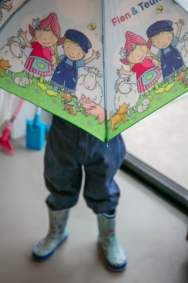 Als het regent heb je natuurlijk een paraplu nodig! De kinderparaplu van Fien & Teun zorgt dat jij droog blijft tijdens een regenbui. En, is dus handig maar ook superleuk!