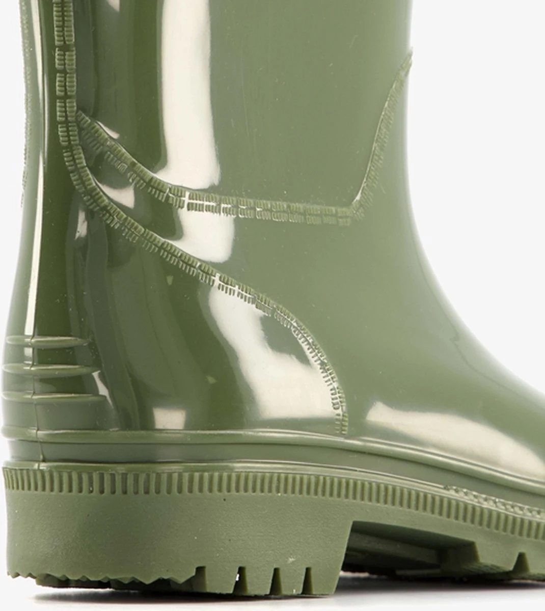 Groene kuit regenlaarzen voor kinderen. Gemaakt van synthetisch PVC, wat de laarzen flexibel maakt. Voorzien van een stevige profielzool die zorgt voor veel grip, en optimaal comfort biedt. Ontworpen voor een all-round bescherming in verschillende (weers)omstandigheden en condities, van wandelen in het bos tot stampen in de plassen of door het zand.