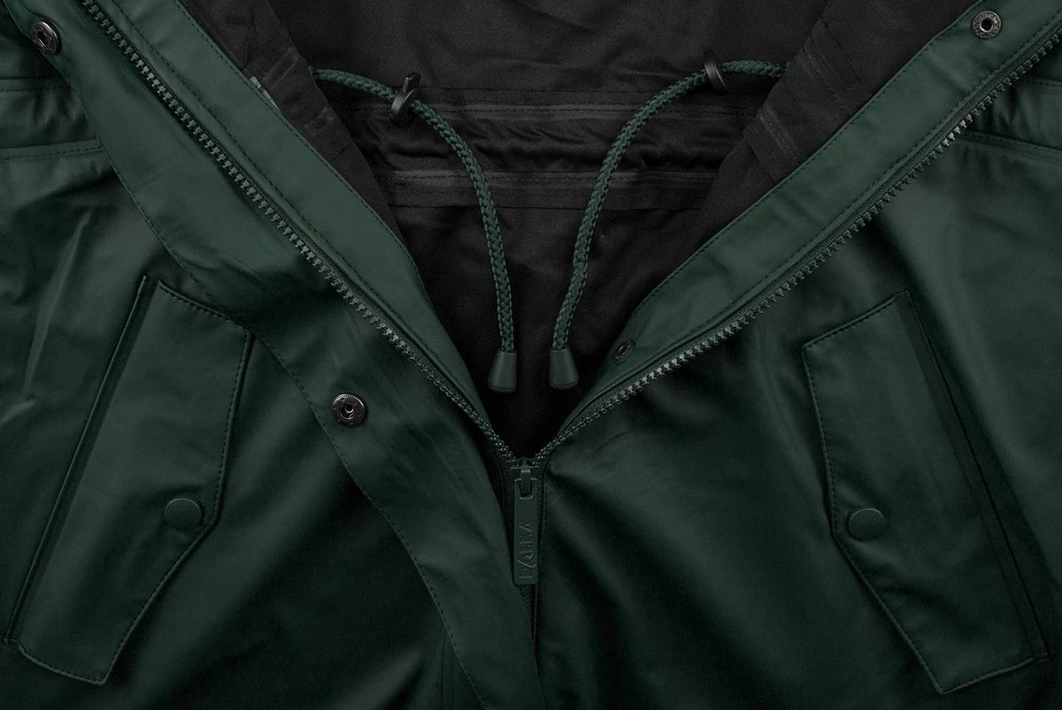 Geen kans om nat te worden met deze functionele en trendy regenjas met capuchon van Ralka. Gemaakt van hoogwaardig materiaal is de jas waterdicht tot minimaal een waterkolom van 3000 mm, ruim voldoende om je tijdens een wandeling of op de fiets met regenachtig weer droog te houden. De regenmantel is voorzien van een 2-way rits en steekzakken met regenoverslagen. De jas is vervaardigd met gelaste naden en een matte PU coating voor extra waterdichtheid. Een opening in de rug van de jas zorgt voor voldoende ventilatie terwijl de jas als geheel winddicht blijft. De getailleerde pasvorm van de Mizzle is naar wens in te stellen en zorgt voor een stijlvolle look. Via een elastisch koord met stopper is de capuchon naar wens verstelbaar. Bij de mouwen is de breedte met drukknopen aan te passen. Kortom, de perfecte jas voor typisch Nederlandse buien.