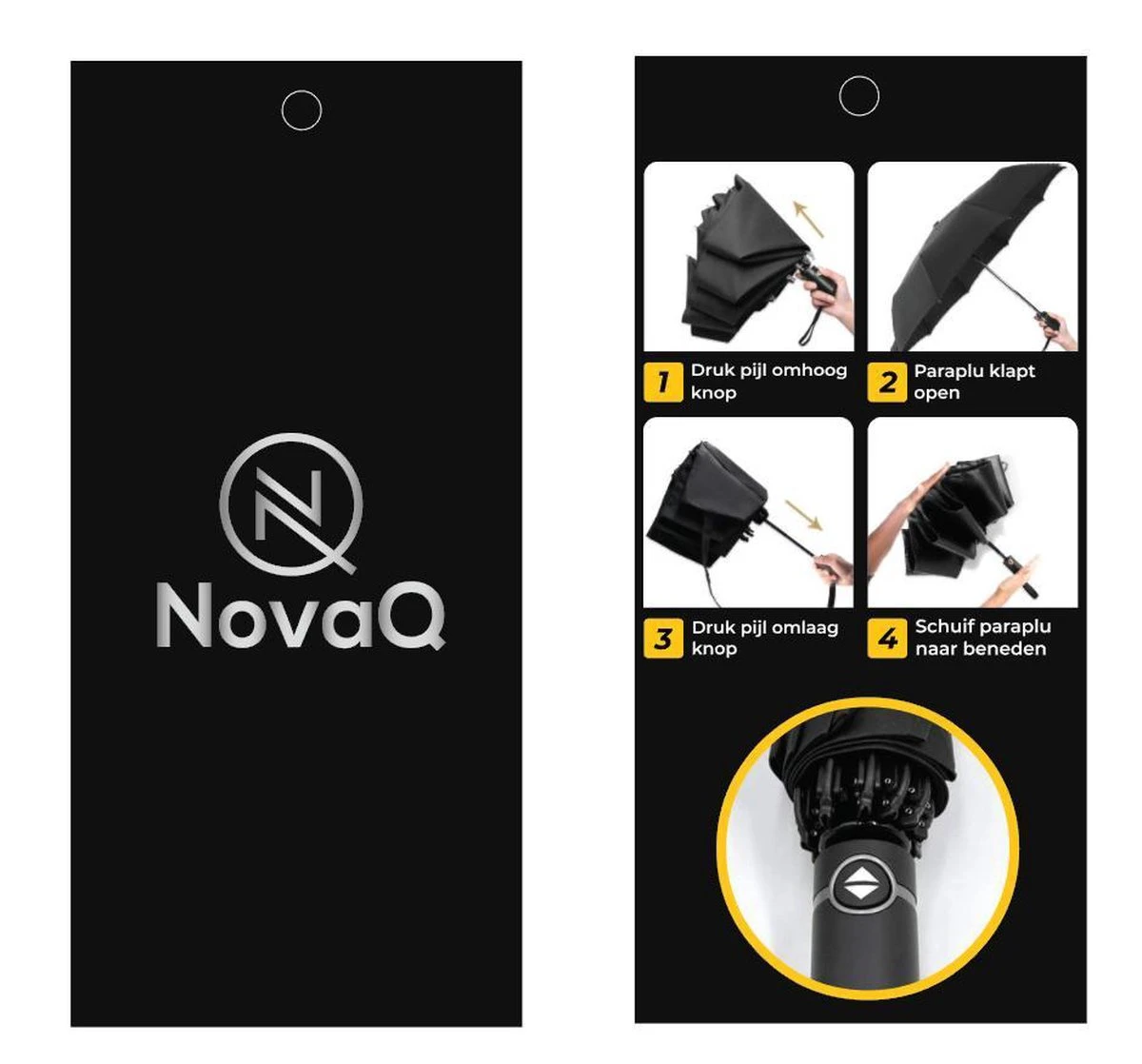 De NovaQ Stormparaplu is met 1 eenvoudig te openen en te sluiten. Daarna dient de paraplu ingeschoven te worden. Je kan hem overal mee naar toe nemen. Door het compacte formaat past de paraplu in rugzakken, (hand) tassen, koffers etc. Nooit meer voor verassingen staan met slecht weer. Door het hoogwaardige 190T pongee materiaal ben je verzekerd van een goed waterafstotend stormparaplu die tevens sneldrogend is.