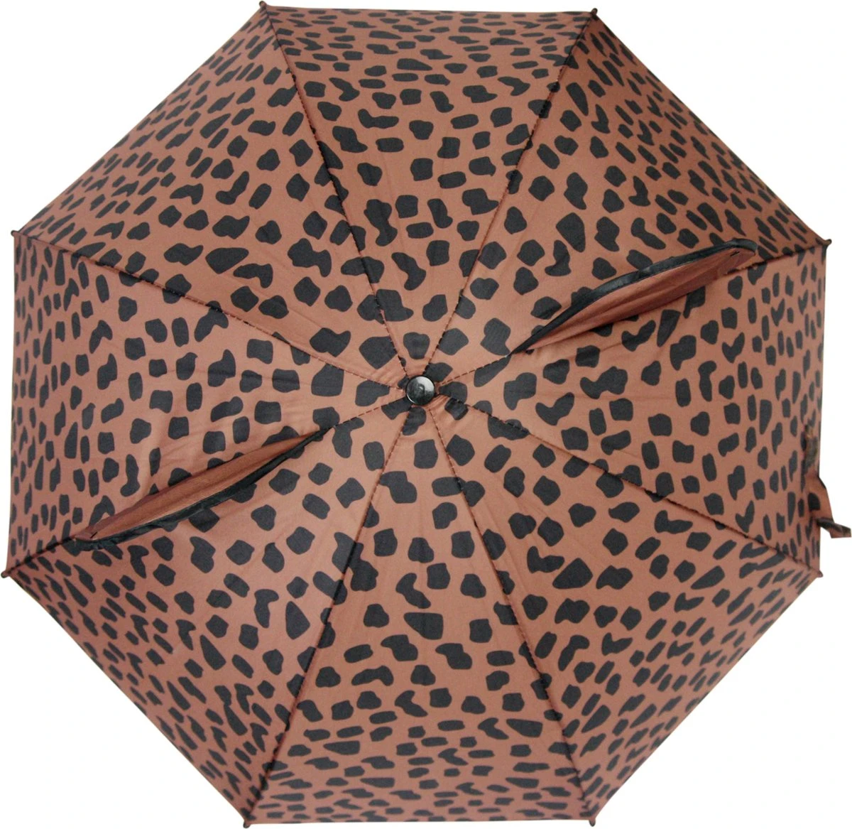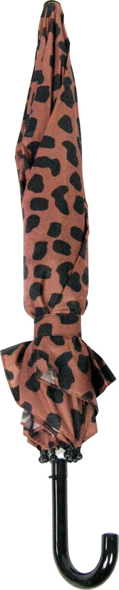 Super leuke kinderparaplu in caramel kleur met zwarte spots print. De paraplu heeft schattige berenoren. Deze paraplu maakt de regen leuk!